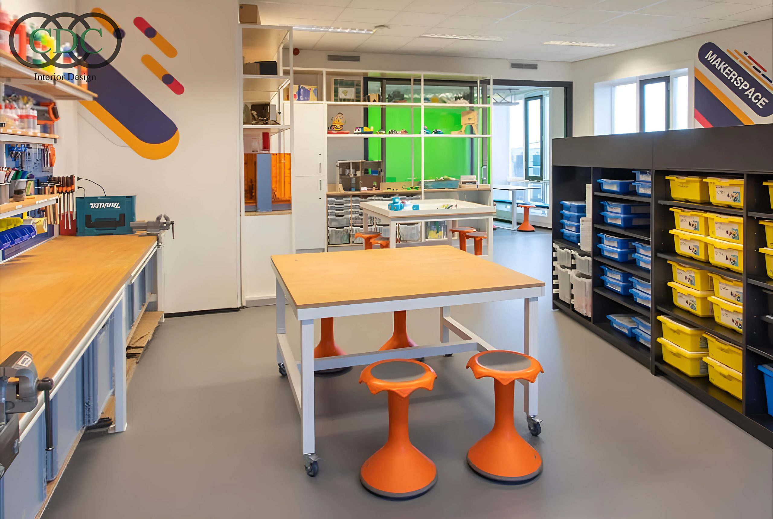 Sau khi khảo sát, CDC Việt Nam Group tiến hành xây dựng phương án thiết kế phòng học STEM chi tiết, bao gồm bố trí mặt bằng, lựa chọn vật liệu, nội thất, trang thiết bị và hệ thống kỹ thuật. Phương án thiết kế được tối ưu đồng thời về công năng, thẩm mỹ và chi phí, giúp nhà trường dễ dàng triển khai và kiểm soát ngân sách.