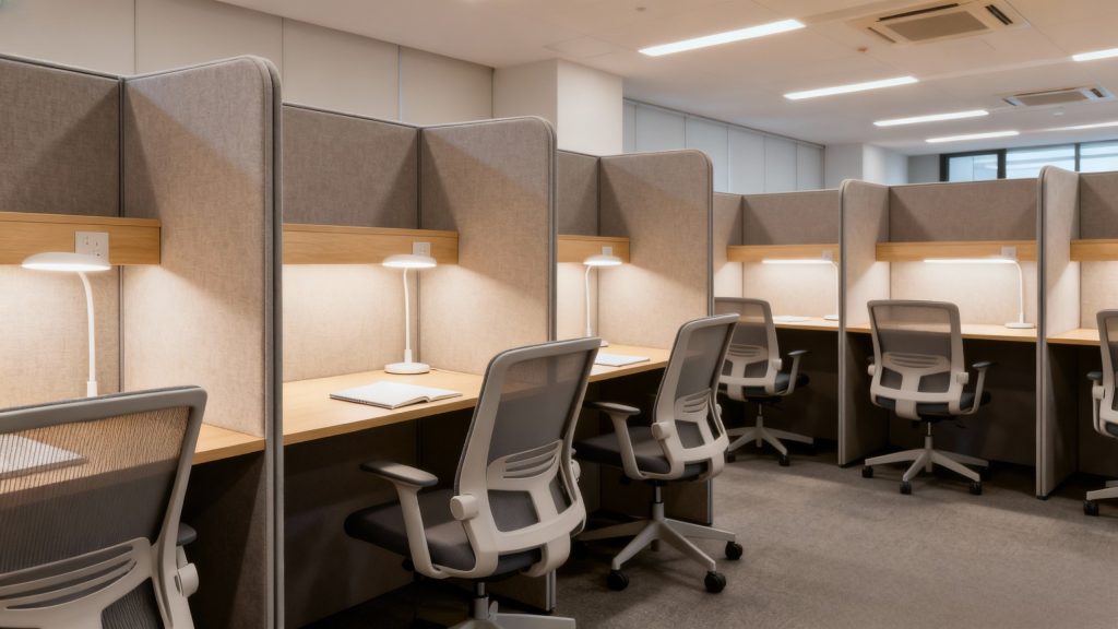 Sắp xếp chỗ ngồi, bàn ghế, luồng di chuyển hợp lý.